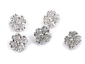 Kovové knoflíky čtyřlístky se úchvatně třpytí díky broušeným kamínkům, kterými jsou osázené.