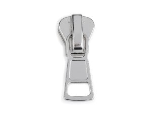 Kovový oboustranný jezdec s překlápěcím poutkem je určený ke kostěným zipům s šířkou 5 mm, které najdete [pod kódem 090847].