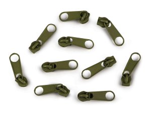 Kovový jezdec je určený ke kostěným zipům No 5 v metráži, které u nás najdete pod kódy 090847, 790837, [750994, 740911, 750503].