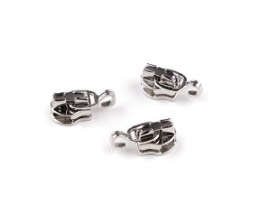 Kovový jezdec je určený ke kostěným zipům No 5 v metráži, které u nás najdete pod kódy 090847, 790837, [750994, 740911, 750503].