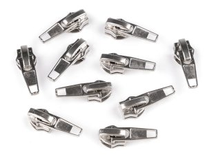 Kovový jezdec je určený ke kostěným zipům No 5 v metráži, které u nás najdete pod kódy 090847, 790837, [750994, 740911, 750503].