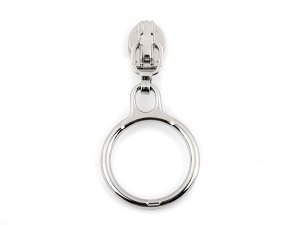 Kovový jezdec s táhlem v podobě kroužku je určený ke spirálovým zipům o šíři 3 mm v metráži, které u nás najdete pod kódem 750678, 050716, 060714.