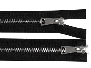Kovový zip má 2 jezdce, které můžete rozepnout z obou stran.