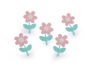 Aplikaci květiny zdobí struktura výšivky.