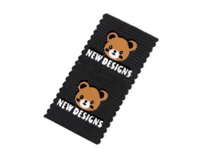 Cedulka z obrázkem medvídka je sice jednostranná, ale po ohnutí na poloviny a přišití okolo lemu kapsy, čepice apod. má medvídka na přední i zadní straně.