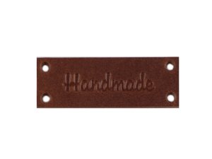 Cedulku z eko kůže oválného tvaru zdobí jednostranný nápis "hand made".