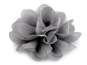 Romantický textilní květ má bohaté okvětní plátky, působí nadýchaným vzhledem.