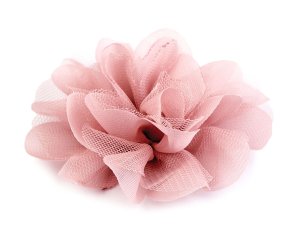 Romantický textilní květ má bohaté okvětní plátky, působí nadýchaným vzhledem.