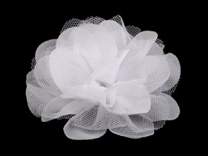 Elegantní květ se zdobeným středem je složený ze 2 vrstev tužšího monofilu s jemným perleťovým leskem.