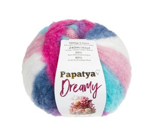 Příze PAPATYA DREAMY materiál 80% Akryl, 20% Nylon 100g / 240 m praní na 30°C jemný postup sušit v sušičce nedoporučujeme žehlit nedoporučujeme doporučená velikost jehlic č. 5-6 mm háček 7 mm Velmi jemná …