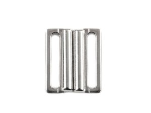 Kovové zapínání na plavky je složené ze dvou dílů a zapíná se vsunutím jednoho dílu mezi druhý díl.