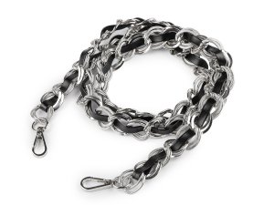Koženkový popruh je elegantně propletený kovovým řetízkem.