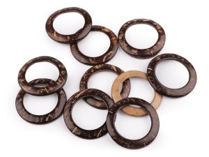 Přírodní kokosové kroužky jsou vhodné k výrobě uch na kabelky a tašky, k ozdobení kabelek i na výrobu macramé dekorací či pásků.