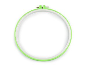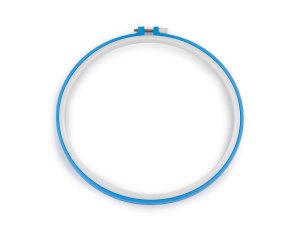 Vyšívací plastový kruh je pevný, opatřený kovovým stahovacím šroubkem, pomocí něhož přichytnete vyšívací tkaninu.