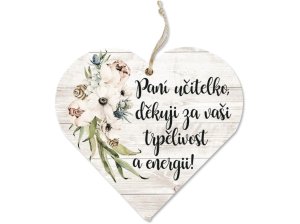 Dřevěné dekorační srdce pro paní učitelku – Paní učitelko, děkuji za vaši energii a trpělivost. Šířka dřevěného srdce je 120 mm, tloušťka 10 mm.