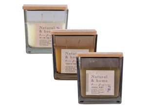 Svíčka ve skle 100×100 mm, vonná, s dřevěným víčkem Natural Home, mix vůní a barev.