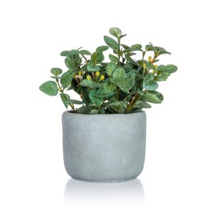Květina Eucalyptus v betonovém květináči 19 x 18 cm, je umělá květina, která slouží jako náhrada živých rostlin a skvěle se hodí pro dekorování bytových prostor.