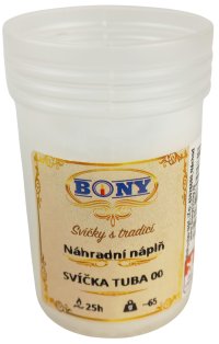Svíčka v plastovém průhledném obalu určená pro venkovní použití například na hřbitovy s délkou hoření až 25 hodin.