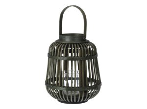 Přírodní proutěná lampa s uchem v jemné zelené barvě, ideální pro romantické večery.