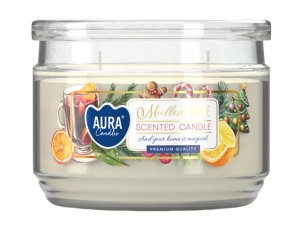 Vonná svíčka ve skle. Má sladce-kořeněnou vůni.
