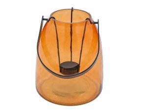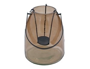 Dekorativní, skleněný svícen se vyrábí strojově z tónovaného skla.