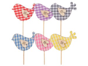 Dřevěný zápich, ptáček + špejle, kostička, mix barev 45x60 mm