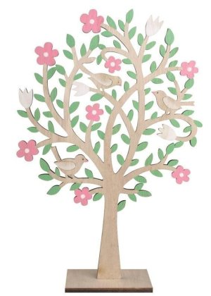 Strom dřevěný s růžovými květy na postavení 30 cm