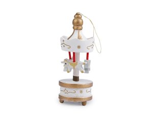 Dřevěný miniaturní kolotoč ozdobí vánoční stromeček, větvičky ve váze i dekorační věnce.