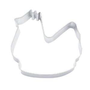 Vykrajovátko z pocínovaného plechu ve tvaru slepičky.