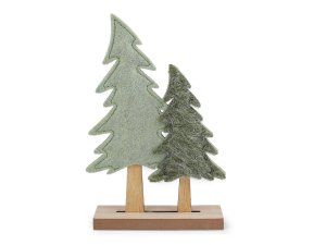 Dekorační stromečky mají základ z pevného filcu a podstavec ze dřeva.