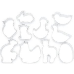 Desetidílná sada roztomilých vykrajovátek s motivy domácích zvířátek, vhodné k nazdobení bílkem s cukrem nebo potravinářskými barvivy, spolupracovat na jejich vytváření budou jistě s radostí i vaše …