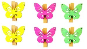 Dřevění motýlci v jarních barvách jsou určeni k vytváření dekorací.
