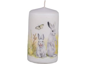 Rustikální svíčka ve tvaru válce.