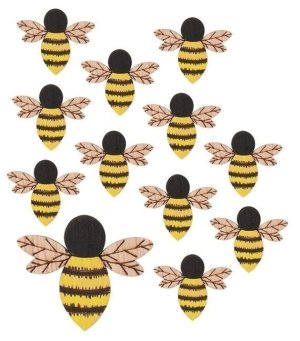 Včela dřevěná s lepíkem 4 cm, 12 ks v sáčku