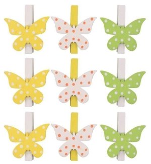 Motýlci dřevění na kolíčku 3 barvy 4,5 cm, 9 ks v sáčku