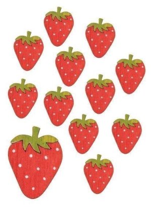 Jahody s lepíkem dřevěné 3 cm, 24 ks v krabičce