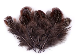 Bažantí pírko má v dolní polovině jemné chmýří, horní polovinu tvoří plochá část, kterou zdobí zajímavý design.