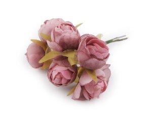 Umělé mini růže jsou připevněné k drátku, který je omotaný floristickou páskou.