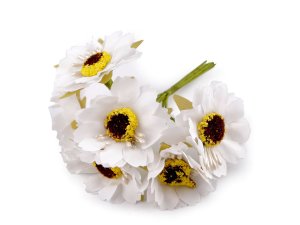 Pestíky, vhodné k výrobě květin, jsou matné a připevněné naškrobené na šňůrce.