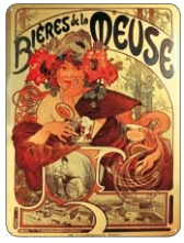 Plechová cedule s motivem klasika secese Alfonse Muchy.