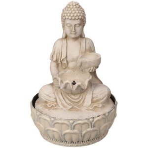 Dekorativní fontána s Buddhou a LED osvětlením Elegantní modulová fontána s motivem Buddhy je vyrobena z kvalitního polyresinu a doplněna LED světlem, které vytváří příjemnou a uklidňující atmosféru.