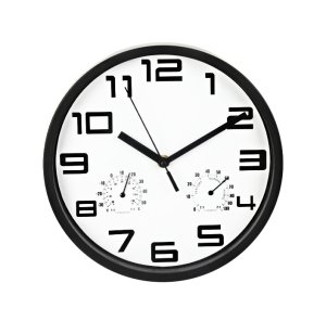 Nástěnné hodiny s teploměrem a vlhkoměrem – PP Praktické nástěnné hodiny, které kromě přesného času zobrazují i teplotu a vlhkost vzduchu.