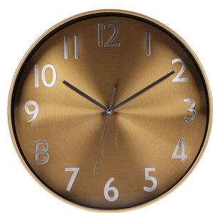 - nástěnné hodiny v hliníkovém provedení- napájení pouze na 1 tužkovou AA baterii (není součástí hodin)- dobře čitelné číslice- rozměry: 29 x 5 cm- barva: zlatá