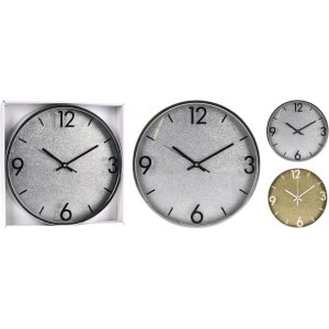 klasické nástěnné hodiny na baterii AA kombinace skla a plastového rámu v metalické šedé barvě vhodné do prostorných interiérů výrazný a dobře viditelný ciferník kvalitní Quartz mechanismus výška číslic: …