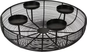 Svícen na 4 svíčky, průměr 36 cm, výška 10 cm, černý kovový drát, kulatý tvar, elegantní vánoční dekorace i pro celoroční dekoraci.