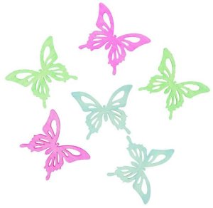 Dřevění motýlci v jemných barvách jsou určeni k vytváření dekorací.