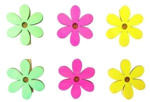 Dřevěné kytičky v jarních barvách.