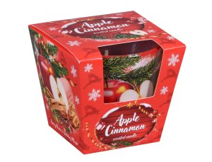 Vonná svíčka ve skle s vůní jablka a skořice přináší hřejivou, sladce kořenitou vůni, která připomíná sváteční pečení a zimní pohodu.