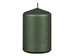 Lesklá stříbrná adventní svíčka ve tvaru válce.