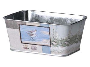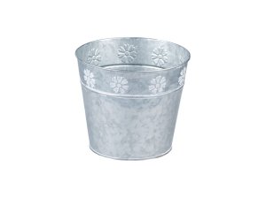 Plechový květináč klasik bordura kvítek v šedé a bílé barvě 180x155mm